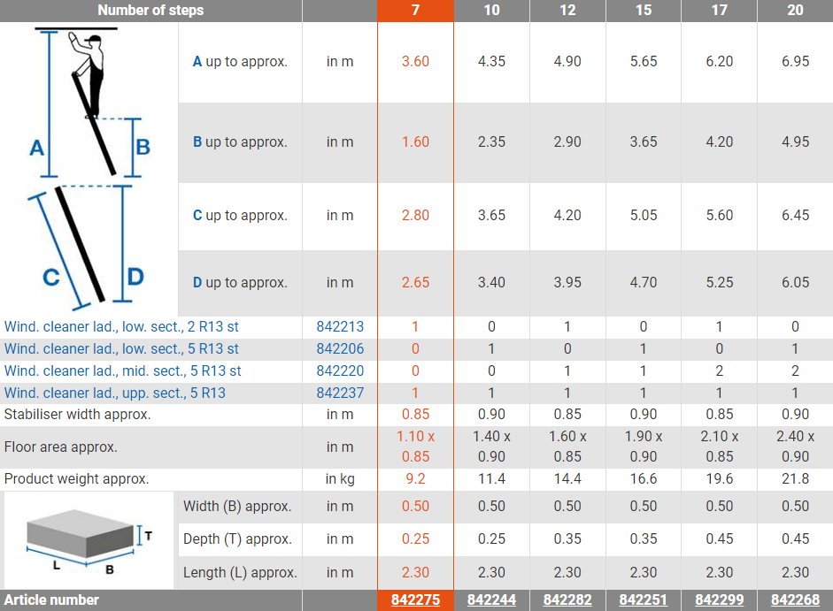 Gemakkelijk op te bergen aluminium insteekladder uit één deel te combineren als set van maximaal 4 delen voor verschillende werkhoogtes. De gebruikte stappen maken TRBS 2121-2-compatibel gebruik als werkstation mogelijk.
